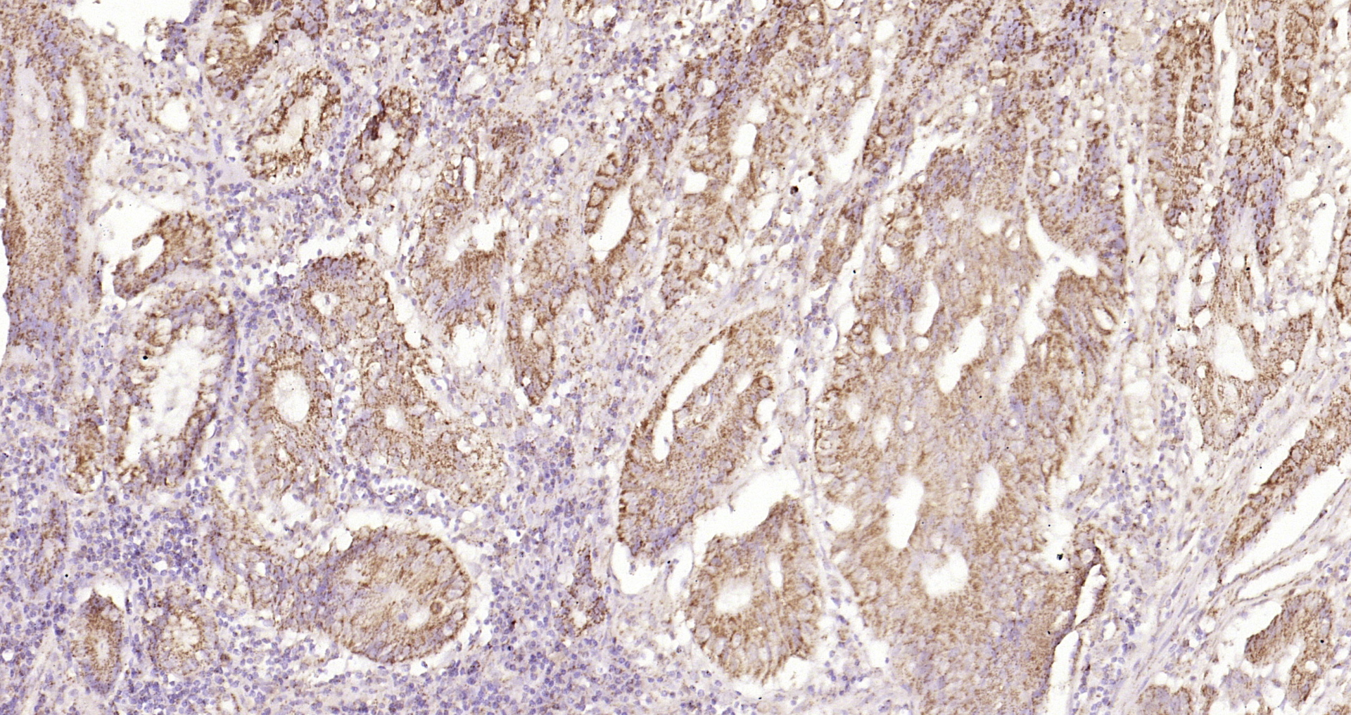 Paraformaldehyde-fixed, paraffin embedded Human colon cancer; Antigen retrieval by boiling in sodium citrate buffer (pH6.0) for 15min; Block endogenous peroxidase by 3% hydrogen peroxide for 20 minutes; Blocking buffer (normal goat serum) at 37°C for 30min; Antibody incubation with Ecat1 Polyclonal Antibody, Unconjugated (bs-13596R) at 1:200 overnight at 4°C, DAB staining.