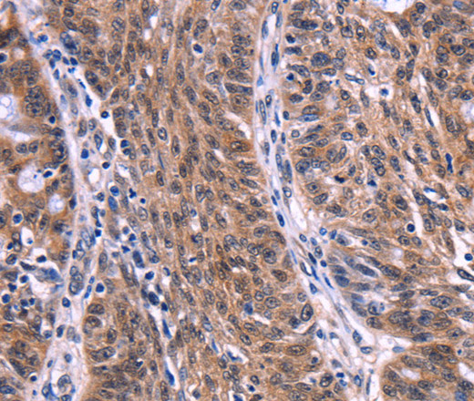 Immunohistochemistry of paraffin-embedded Human ovarian cancer tissue using EIF2AK4 Polyclonal Antibody at dilution 1:50