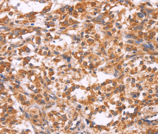 Immunohistochemistry of paraffin-embedded Human thyroid cancer tissue using EMP2 Polyclonal Antibody at dilution 1:30