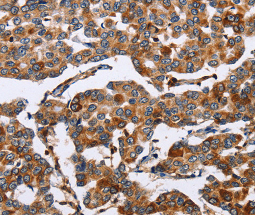Immunohistochemistry of paraffin-embedded Human breast cancer tissue using ENPP5 Polyclonal Antibody at dilution 1:60