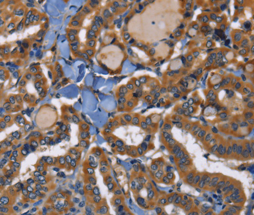 Immunohistochemistry of paraffin-embedded Human thyroid cancer tissue using EPHB6 Polyclonal Antibody at dilution 1:40