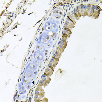 Immunohistochemistry of paraffin-embedded Mouse lung using ERBB4 Polyclonal Antibody at dilution of 1:100 (40x lens).
