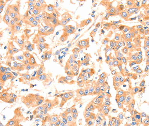 Immunohistochemistry of paraffin-embedded Human breast cancer tissue using Factor XIIIa Polyclonal Antibody at dilution 1:80