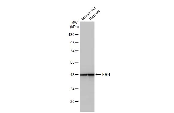 ![Various tissue extracts (50 μg) were separated by 10% SDS-PAGE, and the membrane was blotted with FAH antibody [HL1970] (GTX637863) diluted at 1:1000. The HRP-conjugated anti-rabbit IgG antibody (GTX213110-01) was used to detect the primary antibody.](https://www.genetex.com/upload/website/prouct_img/normal/GTX637863/GTX637863_T-44858_20221125_WB_M_tissue_22112723_506.webp)