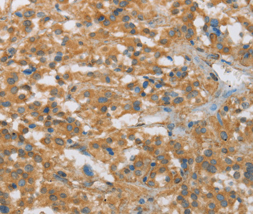 Immunohistochemistry of paraffin-embedded Human thyroid cancer tissue using FASLG Polyclonal Antibody at dilution 1:30