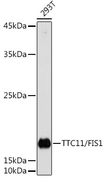 Western blot analysis of extracts of 293T cells using TTC11/FIS1 Polyclonal Antibody at 1:1000 dilution.