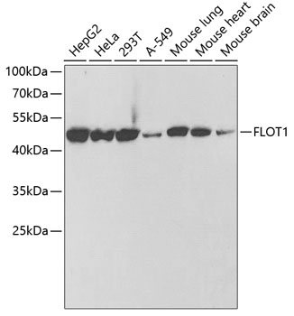 Western blot analysis of extracts of various cell lines using FLOT1 Polyclonal Antibody at dilution of 1:1000.