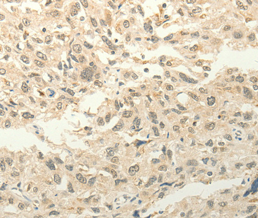 Immunohistochemistry of paraffin-embedded Human esophagus cancer tissue using FZD8 Polyclonal Antibody at dilution 1:50
