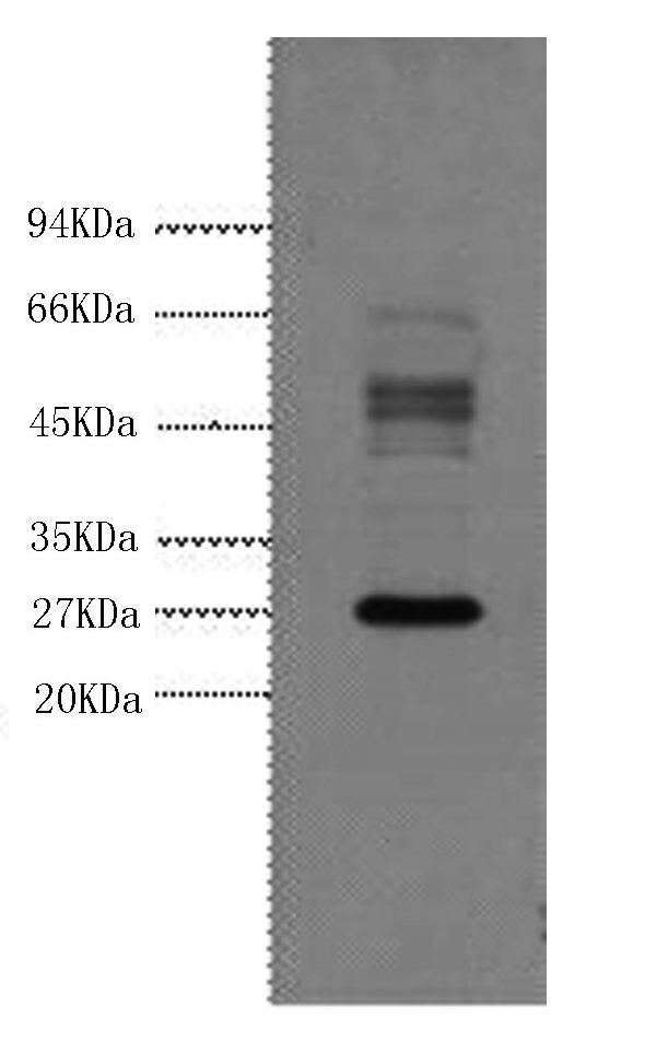 Western Blot analysis of Hela cells using Galectin 3 Monoclonal Antibody at dilution of 1:3000.