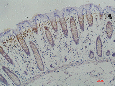 Immunohistochemistry of paraffin-embedded Human colon using Galectin 3 Monoclonal Antibody at dilution of 1:50.