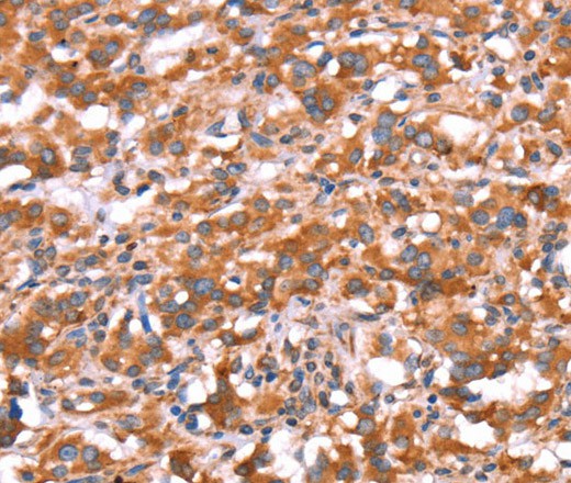 Immunohistochemistry of paraffin-embedded Human thyroid cancer tissue using GAS8 Polyclonal Antibody at dilution 1:30