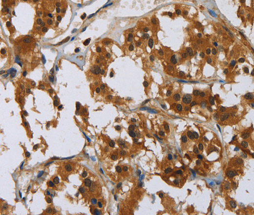Immunohistochemistry of paraffin-embedded Human thyroid cancer tissue using GATA5 Polyclonal Antibody at dilution 1:50
