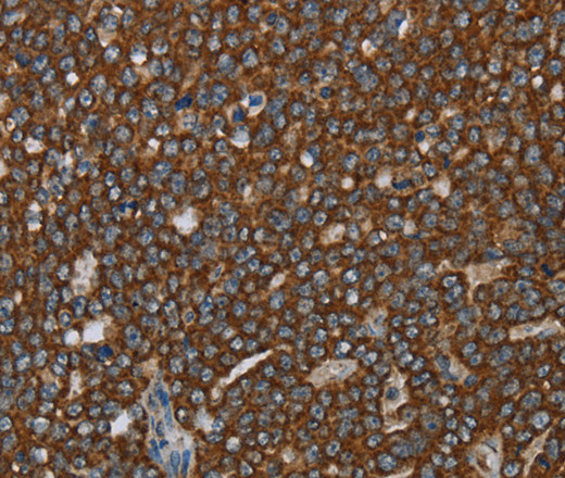 Immunohistochemistry of paraffin-embedded Human ovarian cancer tissue using GCKR Polyclonal Antibody at dilution 1:40