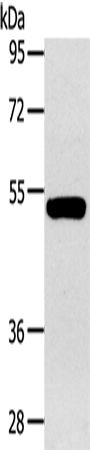 Western Blot analysis of Human fetal muscle tissue using GJA9 Polyclonal Antibody at dilution of 1:400
