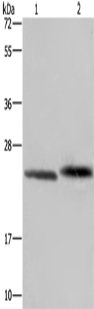 Western Blot analysis of Human prostate tissue and Raji cell using GLO1 Polyclonal Antibody at dilution of 1:400