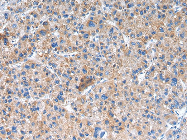 Immunohistochemistry of paraffin-embedded Human liver cancer using GLRA1 Polyclonal Antibody at dilution of 1/20