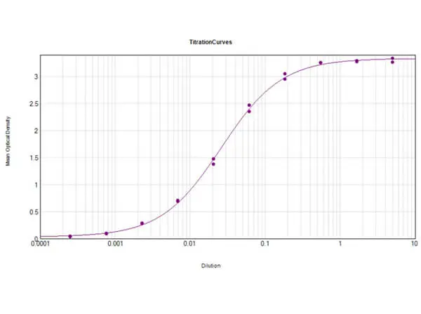 ELISA analysis of donkey IgG using serially diluted GTX26983 Goat Anti-Donkey IgG antibody. Coating : μg