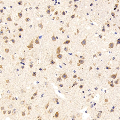 Immunohistochemistry analysis of paraffin-embedded mouse brain using GRIN1 Polyclonal Antibody at dilution of 1:300.