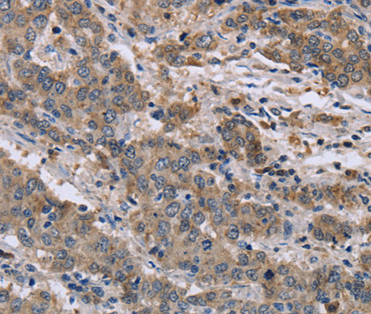 Immunohistochemistry of paraffin-embedded Human liver cancer tissue using GSN Polyclonal Antibody at dilution 1:40
