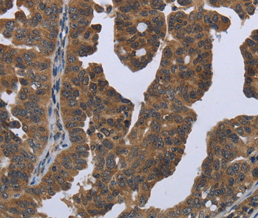 Immunohistochemistry of paraffin-embedded Human ovarian cancer tissue using GYS2 Polyclonal Antibody at dilution 1:50