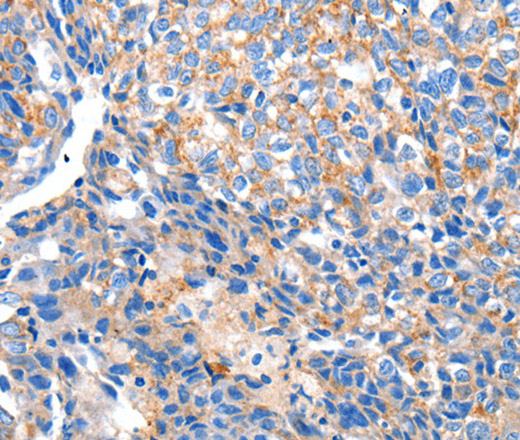 Immunohistochemistry of paraffin-embedded Human breast cancer tissue using HCN2 Polyclonal Antibody at dilution 1:80