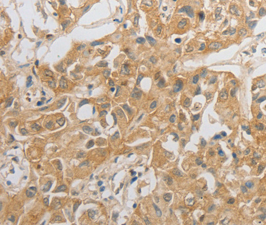 Immunohistochemistry of paraffin-embedded Human lung cancer tissue using HCRTR2 Polyclonal Antibody at dilution 1:50