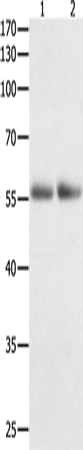 Western Blot analysis of Human colon and kidney cancer tissue using HDAC1 Polyclonal Antibody at dilution of 1:400