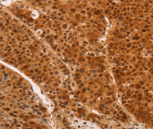 Immunohistochemistry of paraffin-embedded Human liver cancer tissue using HEXIM1 Polyclonal Antibody at dilution 1:65
