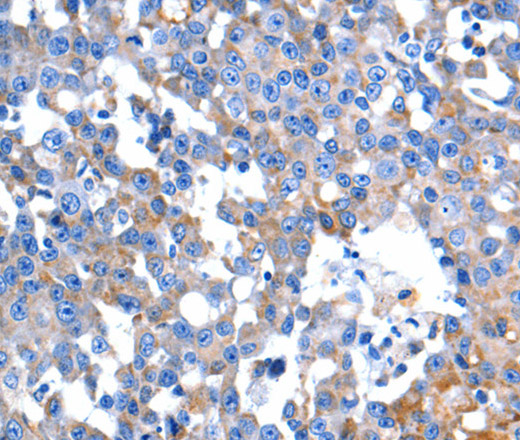 Immunohistochemistry of paraffin-embedded Human breast cancer tissue using HINT2 Polyclonal Antibody at dilution 1:60