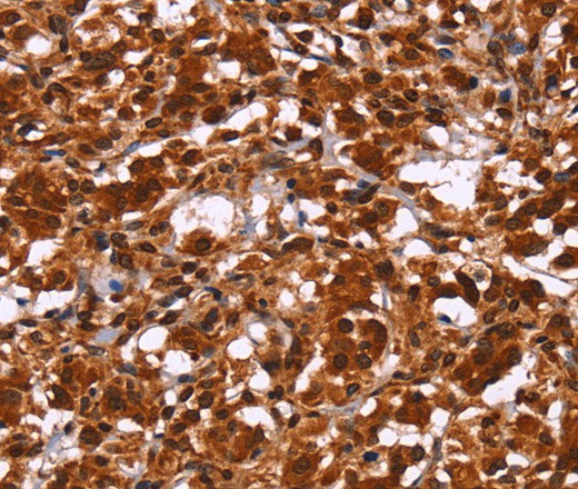 Immunohistochemistry of paraffin-embedded Human thyroid cancer tissue using HIPK1 Polyclonal Antibody at dilution 1:30