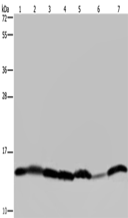 Western Blot analysis of Mouse liver tissue, HepG2, 293T, Hela, Raji, A375 and K562 cell using HIST1H2AH Polyclonal Antibody at dilution of 1:450