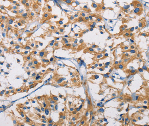 Immunohistochemistry of paraffin-embedded Human thyroid cancer tissue using HK1 Polyclonal Antibody at dilution 1:50