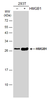![Non-transfected (–) and transfected (+) 293T whole cell extracts (30 μg) were separated by 12% SDS-PAGE, and the membrane was blotted with HMGB1 antibody [GT412] (GTX629400) diluted at 1:3000. The HRP-conjugated anti-mouset IgG antibody (GTX213111-01) was used to detect the primary antibody. Non-transfected (–) and transfected (+) 293T whole cell extracts (30 μg) were separated by 12% SDS-PAGE, and the membrane was blotted with HMGB1 antibody [GT412] (GTX629400) diluted at 1:3000. The HRP-conjugated anti-mouset IgG antibody (GTX213111-01) was used to detect the primary antibody.](https://www.genetex.com/upload/website/prouct_img/normal/GTX629400/GTX629400_41323_20181005_WB_B_w_23061202_582.webp)