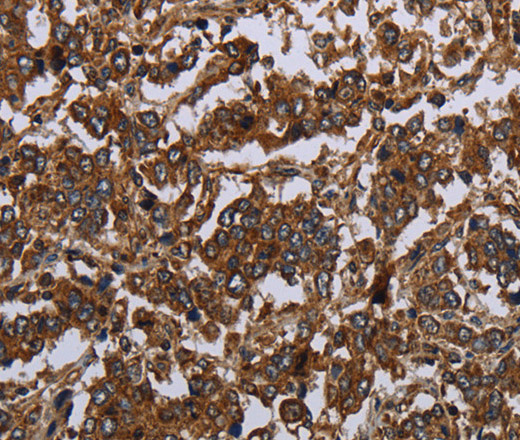 Immunohistochemistry of paraffin-embedded Human liver cancer tissue using HOMER2 Polyclonal Antibody at dilution 1:30