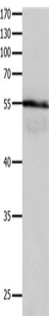 Western Blot analysis of Human brain gliomas tissue using HP Polyclonal Antibody at dilution of 1:400