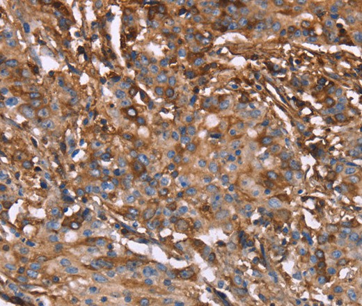 Immunohistochemistry of paraffin-embedded Human gasrtic cancer tissue using HP Polyclonal Antibody at dilution 1:40