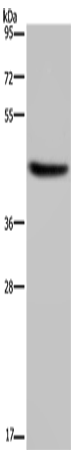 Western Blot analysis of Human adrenal gland tissue using HSD3B1 Polyclonal Antibody at dilution of 1:250