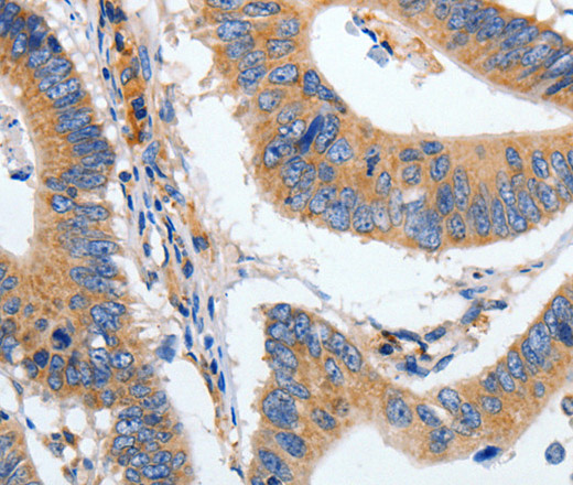 Immunohistochemistry of paraffin-embedded Human colon cancer tissue using HSPA1A Polyclonal Antibody at dilution 1:40