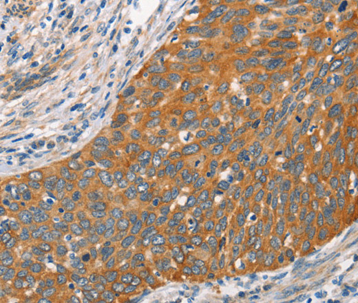 Immunohistochemistry of paraffin-embedded Human cervical cancer tissue using Crystallin-alpha C Polyclonal Antibody at dilution 1:45