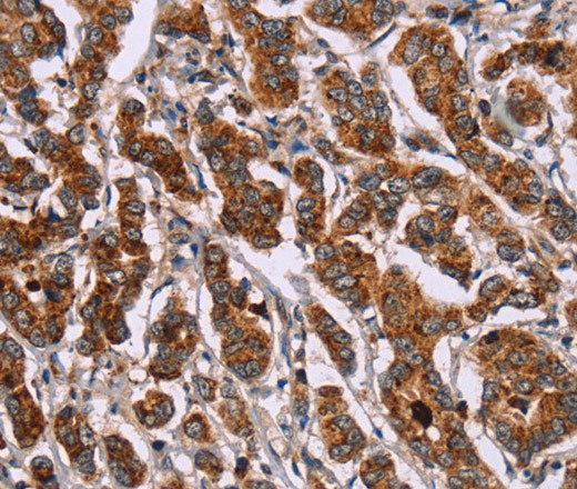 Immunohistochemistry of paraffin-embedded Human breast cancer tissue using ID2 Polyclonal Antibody at dilution 1:30