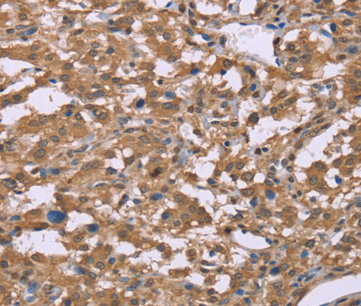 Immunohistochemistry of paraffin-embedded Human liver cancer tissue using IFNA2 Polyclonal Antibody at dilution 1:40