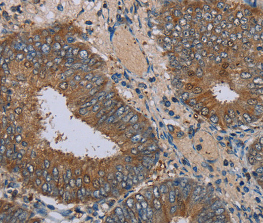 Immunohistochemistry of paraffin-embedded Human colon cancer tissue using IFRD1 Polyclonal Antibody at dilution 1:30