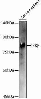 Western blot analysis of extracts of Mouse spleen using IKKbeta Polyclonal Antibody at 1:1000 dilution.