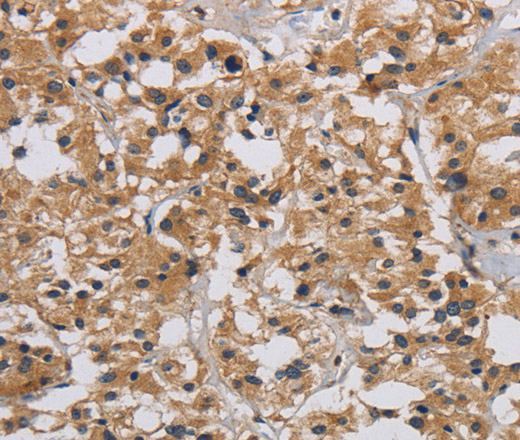 Immunohistochemistry of paraffin-embedded Human thyroid cancer tissue using INPPL1 Polyclonal Antibody at dilution 1:40