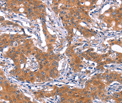 Immunohistochemistry of paraffin-embedded Human gasrtic cancer tissue using IRS1 Polyclonal Antibody at dilution 1:30