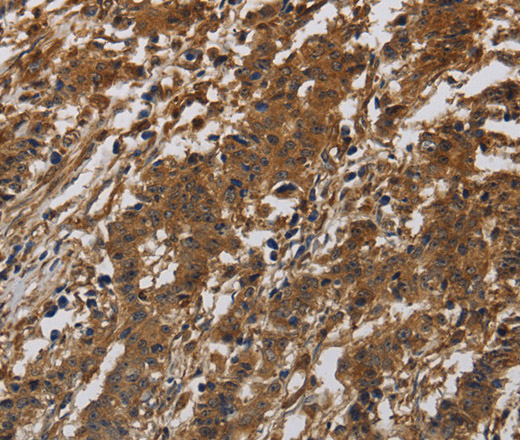 Immunohistochemistry of paraffin-embedded Human liver cancer tissue using ITGB7 Polyclonal Antibody at dilution of 1:40