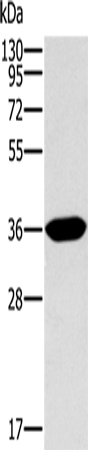Western Blot analysis of Human fetal intestine tissue using ITLN1 Polyclonal Antibody at dilution of 1:400