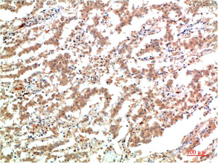Immunohistochemistry of paraffin-embedded Human lung carcinoma tissue using JAK2 Monoclonal Antibody at dilution of 1:200.