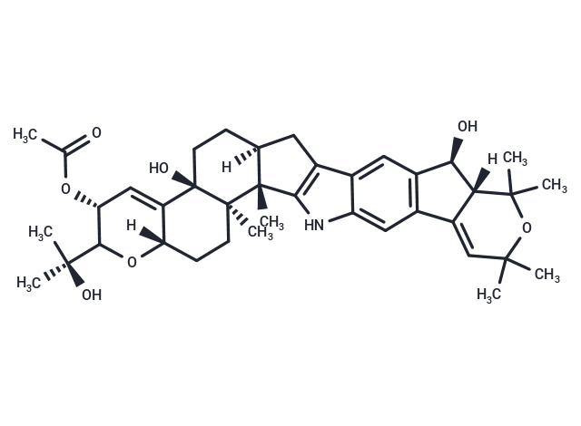 - SMILES[H][C@]12Cc3c([nH]c4cc5C6=CC(C)(C)OC(C)(C)[C@@]6([H])[C@H](O)c5cc34)[C@]1(C)[C@@]1(C)CC[C@]3([H])OC([C@H](OC(C)=O)C=C3[C@]1(O)CC2)C(C)(C)O - c:45,t:9,@@:46 -