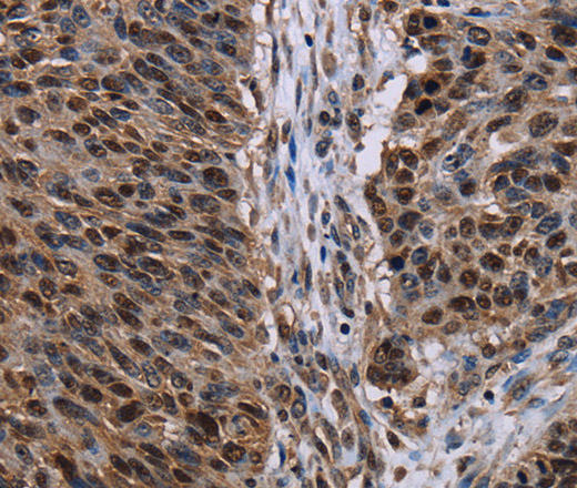 Immunohistochemistry of paraffin-embedded Human lung cancer tissue using KDM3B Polyclonal Antibody at dilution 1:50